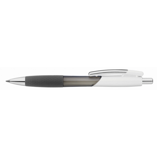 Artikel-Nr: 60200065SIGel-Schreiber mit uni transparent glänzendem Schaft und großer Gummigriffzone, Oberteil weiß gedeckt. Drücker, Clip und Spitze in silber glänzend. Ausgestattet mit einer hochwertigen Gel-Kunststoffgroßraummine (0,7 mm) - Schreiblänge 800 Meter.