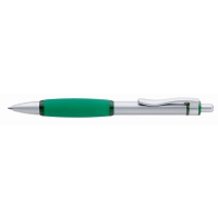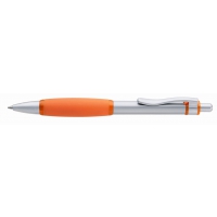 Artikel-Nr: 60209415Metall-Druckkugelschreiber mit glänzend verchromtem, lackiertem Schaft, Drücker, Clip und Spitze. Weiche, große Gummigriffzone und transparente Zierringe unifarben. Europäische Kunststoff-Großraummine nach ISO-Norm, schwarz schreibend.