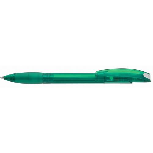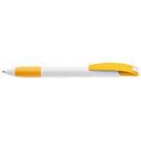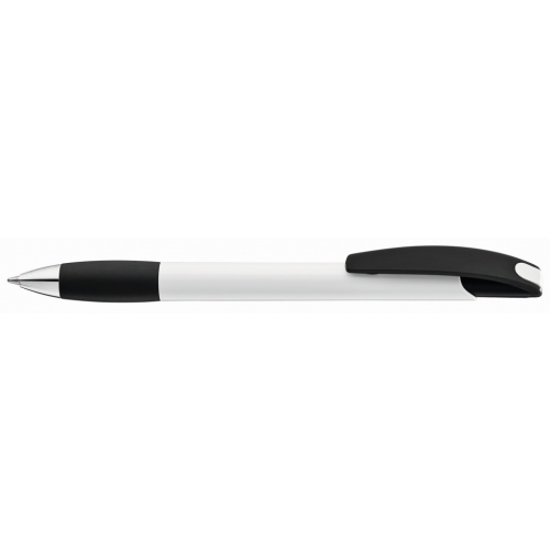 Artikel-Nr: 60200112Druckkugelschreiber mit gedeckt glänzendem Gehäuse in weiß, mit gepolsterter, farbiger Softgriffzone mit Clipdrückermechanik. Bogenclip mit silber glänzendem Drückerstopfen.