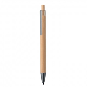 Artikel-Nr: OCBMO2595-40Druckkugelschreiber mit Schaft aus Bambus und Metallclip. Blaue Tinte.