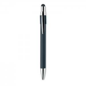 Artikel-Nr: OCBMO2488-85Druckkugelschreiber aus recyceltem Aluminium mit Stylus und Anti-Stress-Spinner-Funktion. Blaue Tinte.