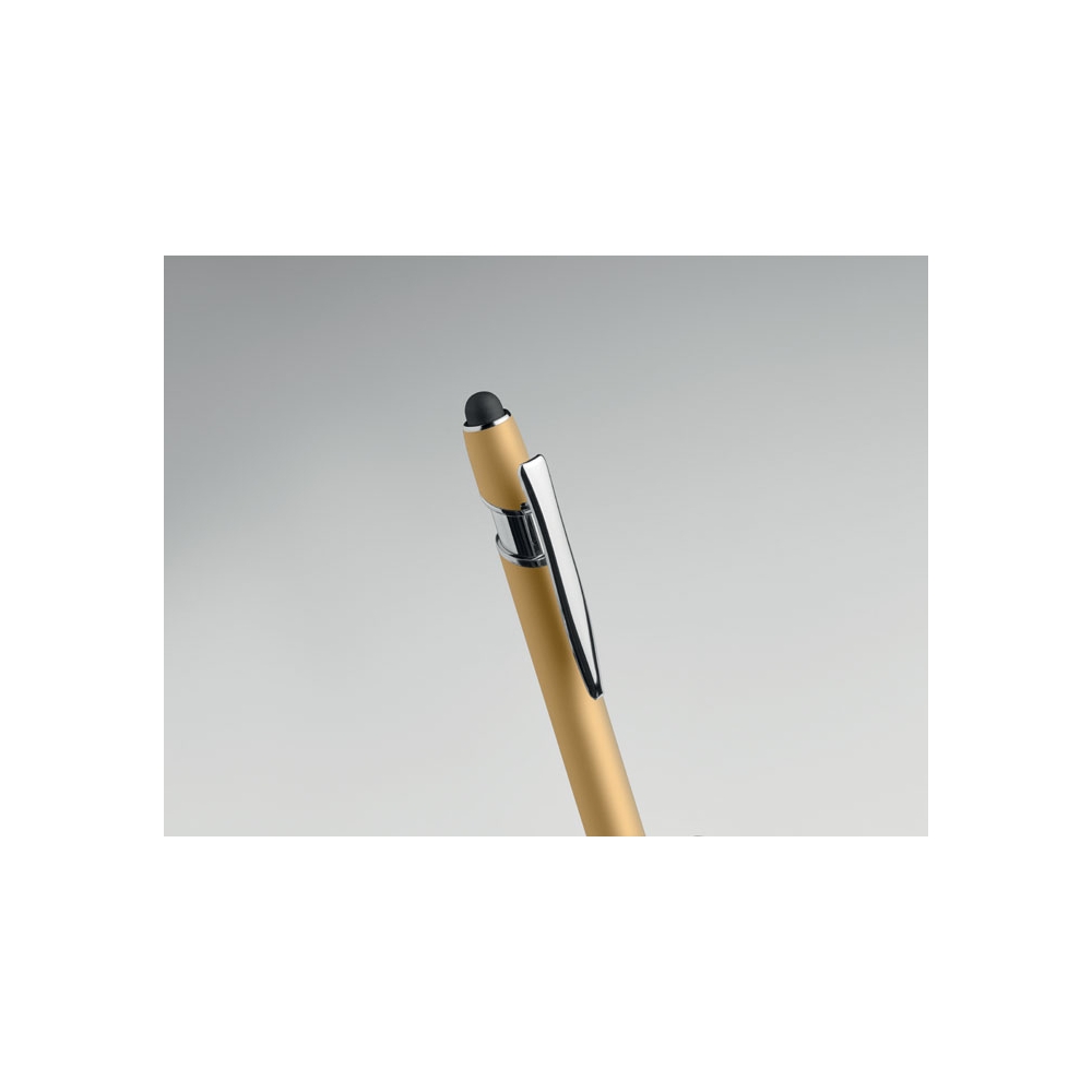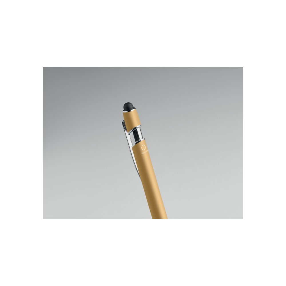 Artikel-Nr: OCBMO2798-98Druckkugelschreiber mit Stylus. Recyceltes Aluminium. Blaue Tinte.