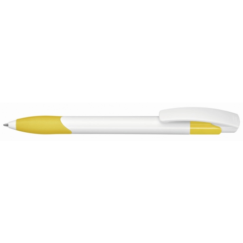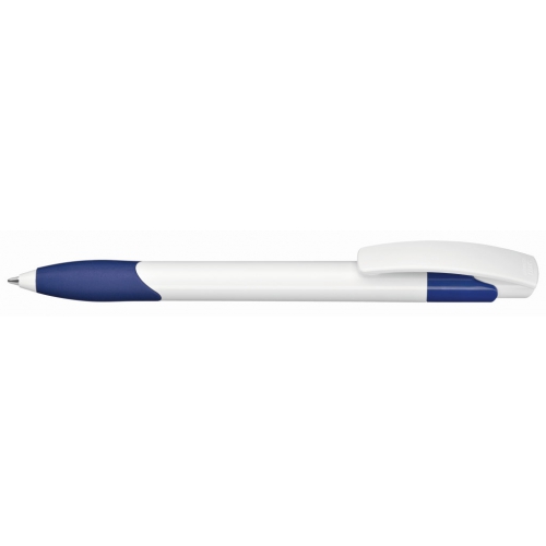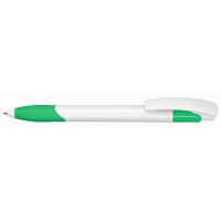 Artikel-Nr: 60200531Druckkugelschreiber mit Gummigriffzone und Manschette unifarben. Schaft und Clipdrücker in weiß.
