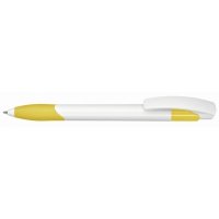 Artikel-Nr: 60200531Druckkugelschreiber mit Gummigriffzone und Manschette unifarben. Schaft und Clipdrücker in weiß.