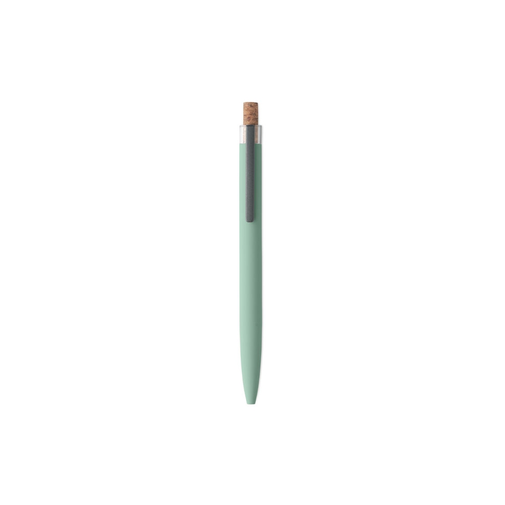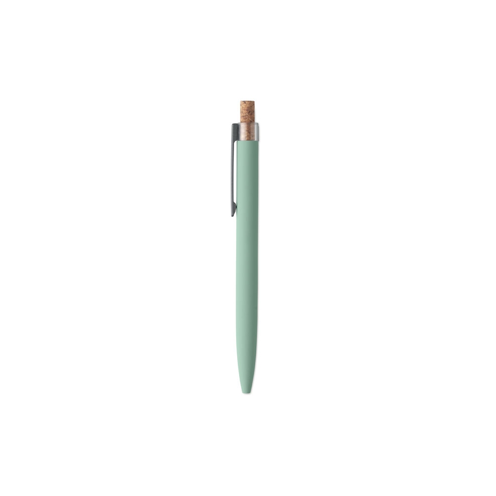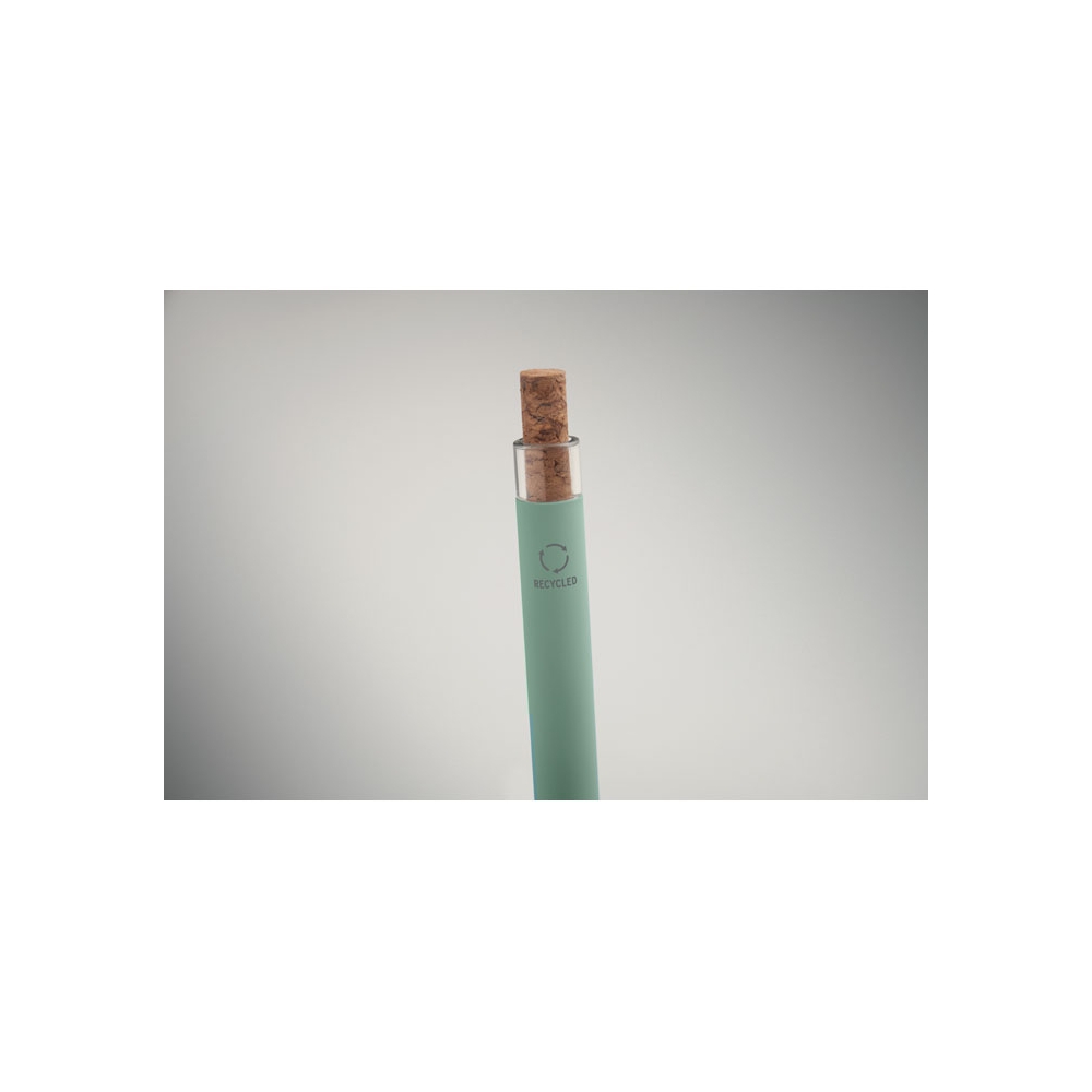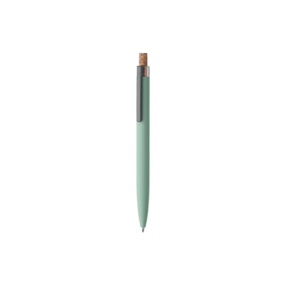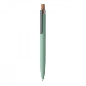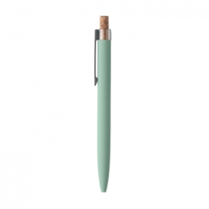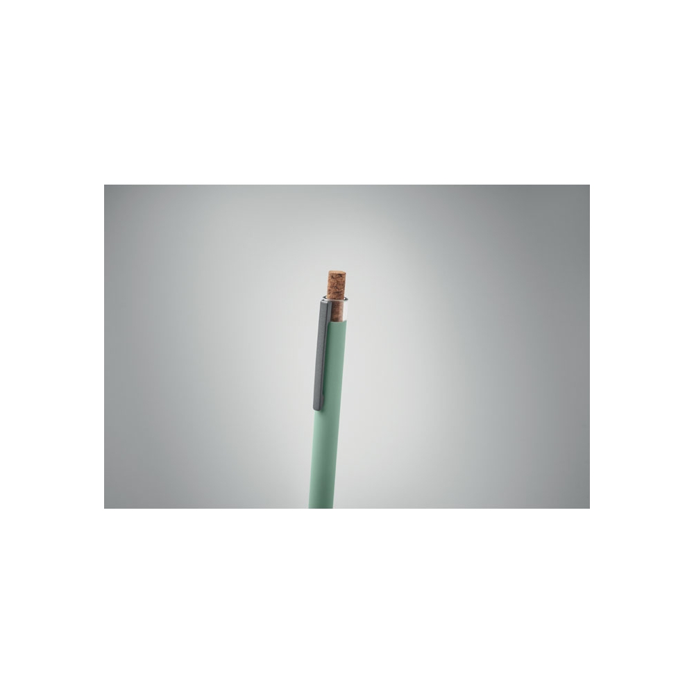 Artikel-Nr: OCBMO2652-77Druckkugelschreiber aus recyceltem Aluminium. Drücker mit Kork, Clip aus Metall. Blaue Tinte.