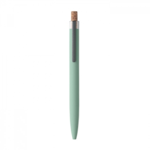 Artikel-Nr: OCBMO2652-77Druckkugelschreiber aus recyceltem Aluminium. Drücker mit Kork, Clip aus Metall. Blaue Tinte.