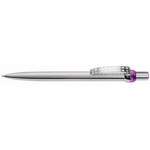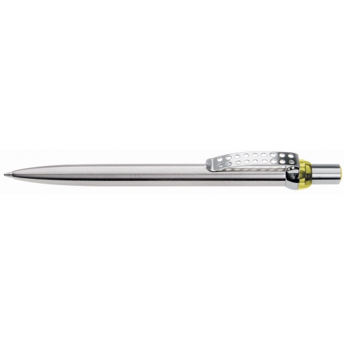 Artikel-Nr: 60200196LMetall-Druckkugelschreiber mit verchromtem und lackiertem Schaft. Obere Halbkugel und Stopfen unifarben transparent. Metallclip, Drücker und untere Halbkugel verchromt.