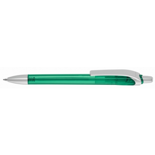 Artikel-Nr: 60200074TSIDruckkugelschreiber mit transparent glänzendem Gehäuse. Spitze, Clip und Drücker unifarben silber.