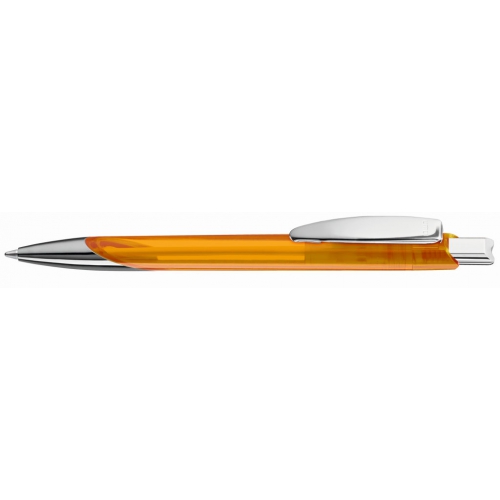 Artikel-Nr: 60200058TMSIDruckkugelschreiber mit glänzend transparentem Gehäuse, Metallclip, Spitze und Drücker silber glänzend.