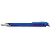 Artikel-Nr: 60200058TSIDruckkugelschreiber mit glänzend transparentem Gehäuse, silber glänzender Spitze und Clipstopfen.