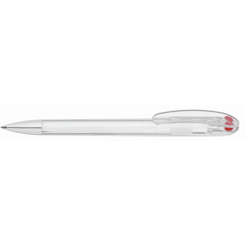 Artikel-Nr: 60210044TSIDrehkugelschreiber mit transparent glänzendem Gehäuse, mit farbigem Stopfen im Oberteil. Mit schwerer, silberglänzender Metallspitze.