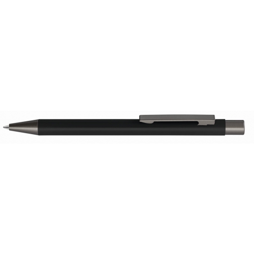 Metall Druckkugelschreiber mit mattem Aluminiumgehäuse Metallclip, Metallspitze, Clip und Drücker in GUN metallic