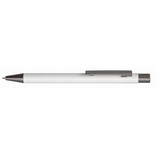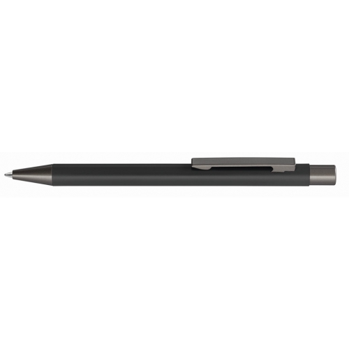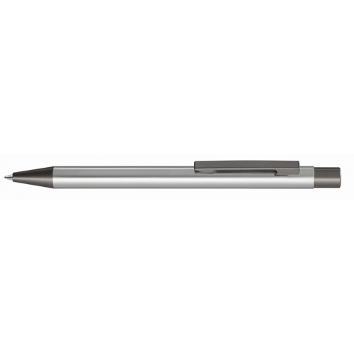 Artikel-Nr: 60209450Metall Druckkugelschreiber mit glänzendem Aluminiumgehäuse, Metallclip, Metallspitze, Clip und Drücker in GUN metallic