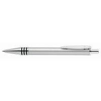 Artikel-Nr: 60208240Metall-Druckkugelschreiber mit 3 eingelassenen, kombinierbaren Gummiringen im Schaft. Glanz lackierter Aluminiumschaft, Beschläge in Metall glanzchrom.