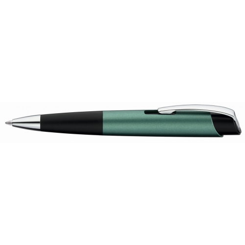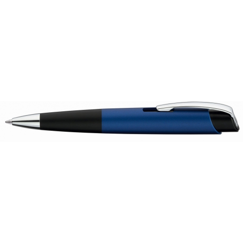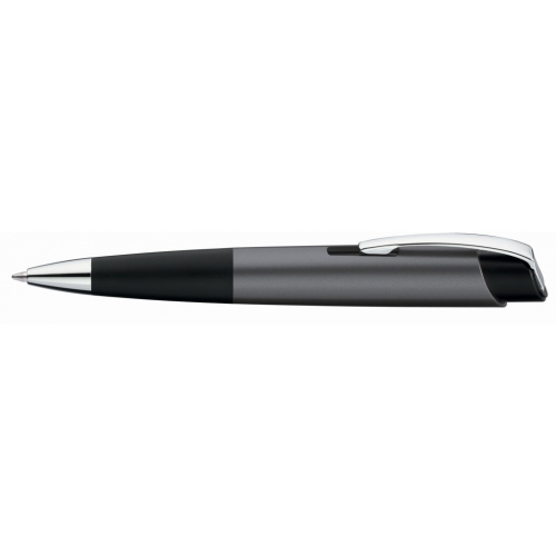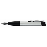 Artikel-Nr: 60200027Druckkugelschreiber mit ovalem, leicht konischem Schaft. Abgesetzte Kunststoffgriffzone und Drücker in schwarz - Metallclip und Spitze in silber glänzend.