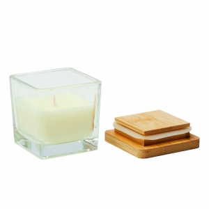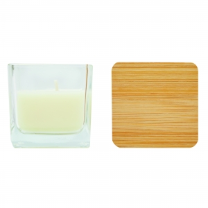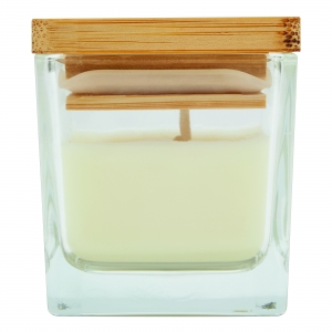 Artikel-Nr: INP56-0901901Duftkerze GLOW: in quadratischem Glas, farbiges Wachs mit Vanille-Duft, Bambusdeckel mit Silikon-Dichtring, Brenndauer ca. 8 Stunden