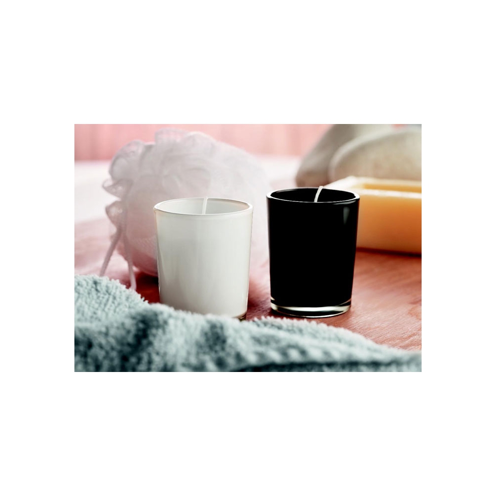 Artikel-Nr: OCBMO9030-06Kleine Duftkerze in farbigem Glas. Duftvarianten: schwarz: Sandelholz, weiß: frische Wäsche, gold: Vanille.50gr.