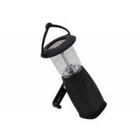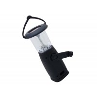 Artikel-Nr: 688PLR417Dynamobetriebene Laterne mit 6 LED's, außerdem integrierte Solarzellen. Schwarzes Kunststoffgehäuse mit Gummibeschichtung. Funktioniert ohne Batterien (ausklappbarer Ladehebel). Lichtleistung: 13000-15000 mcd. Ausklappbare Lasche am Gerätekopf zur Befestigung an der Zeltdecke, etc. 2 Betriebsarten möglich: Dynamo - 1 Minute Aufladen des Akkus reicht aus, um 20 Minuten Licht zu haben bei 3 LED (15 Minuten bei voller Leistung) oder Solar - (ca. 6 Stunden Sonnenlicht sind für die gleiche Betriebsdauer notwendig). Akkuleistung: 60 mAh, Nennspannung 3,6 V. Leuchtkraft der Lampe: 6 bis 12 Lumen, je nach Einstellung Solarzellen aus amorphem Silizium (a-Si), 47 x 47 mm. (Sonnenladung 20.000 Lux, Strom 2,4 mA). Leuchtweite: 8 m