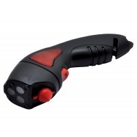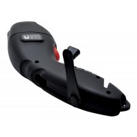 Artikel-Nr: 688PLR432Dynamosicherheitslampe/Notfalllampe. Lampe kann per Magnet am Auto befestigt werden. 3 LED. Gehäuse aus ABS Kunststoff, (schwarz und rot).4 Funktionen : - Taschenlampe (3 LED) - Signallampe durch rotes Blinklicht - Scheibenzertrümmerer - Gurtschneider Aufladbar per Dynamo (1 Minute Aufladen ergibt 10 bis 15 Minuten Leuchtdauer). Leuchtkraft der Lampe : 10 lumen Akku-Typ : LIR2440-3.6V 80mAH - Leuchtdauer nach Vollaufladung : 2 Stunden - Leuchtdauer nach Aufladen per Handkurbel für 1 Minute : ungefähr 15 Minuten - Produktlebensdauer : 3 bis 5 Jahre (gebrauchsabhängig)