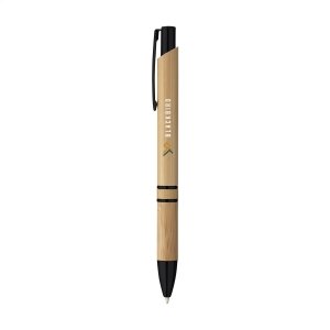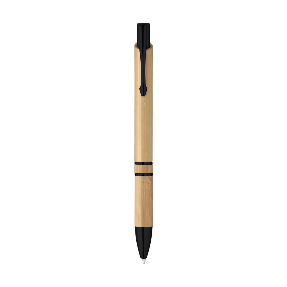 Artikel-Nr: CLP33699820WoW! Blau- oder schwarzschreibender Kugelschreiber mit schickem Bambusgehäuse, Chromringen und Metallclip/-druckknopf.