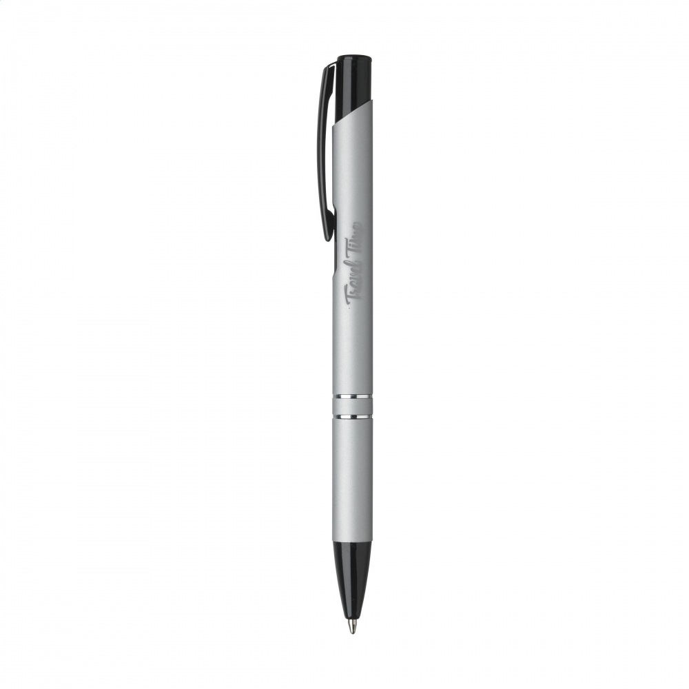 Artikel-Nr: CLP265569-032128Blauschreibender Kugelschreiber mit schwarzem Druckknopf/Clip und Spitze, Chromverflechtungen. Das Gehäuse ist von einer Gummierung abgeschlossen.