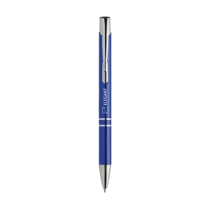Artikel-Nr: CLP262669-005128Blauschreibender Aluminiumkugelschreiber mit glänzendem Gehäuse in Metalloptik und metallenem Clip.