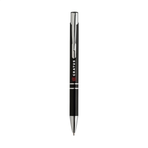Artikel-Nr: CLP266998Blauschreibender Aluminiumkugelschreiber mit glänzendem Gehäuse in Metalloptik und metallenem Clip.