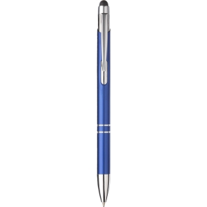 Artikel-Nr: CLP263569-005128Blauschreibender Kugelschreiber mit Aluminiumgehäuse, gummierte Spitze zum Bedienen von Touchscreens (wie iPhone/iPad), mattfarbenes Metallgehäuse und Metallclip/-druckknopf.
