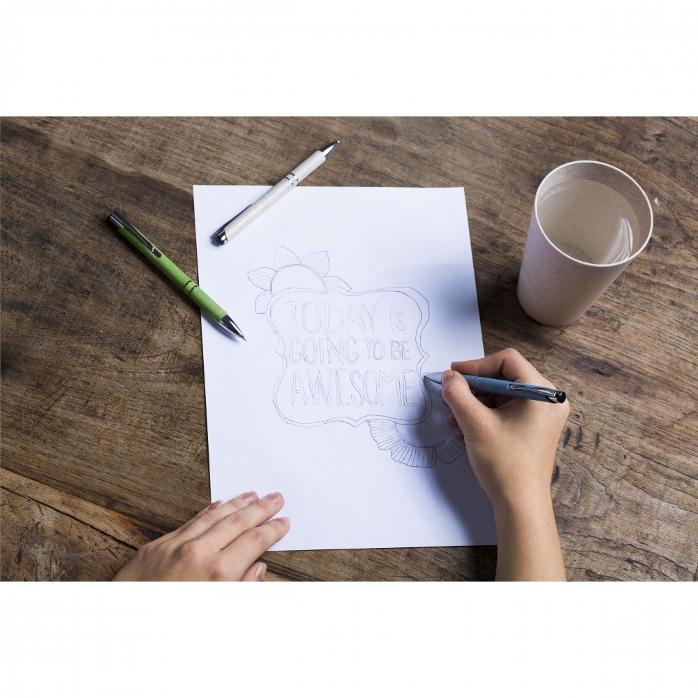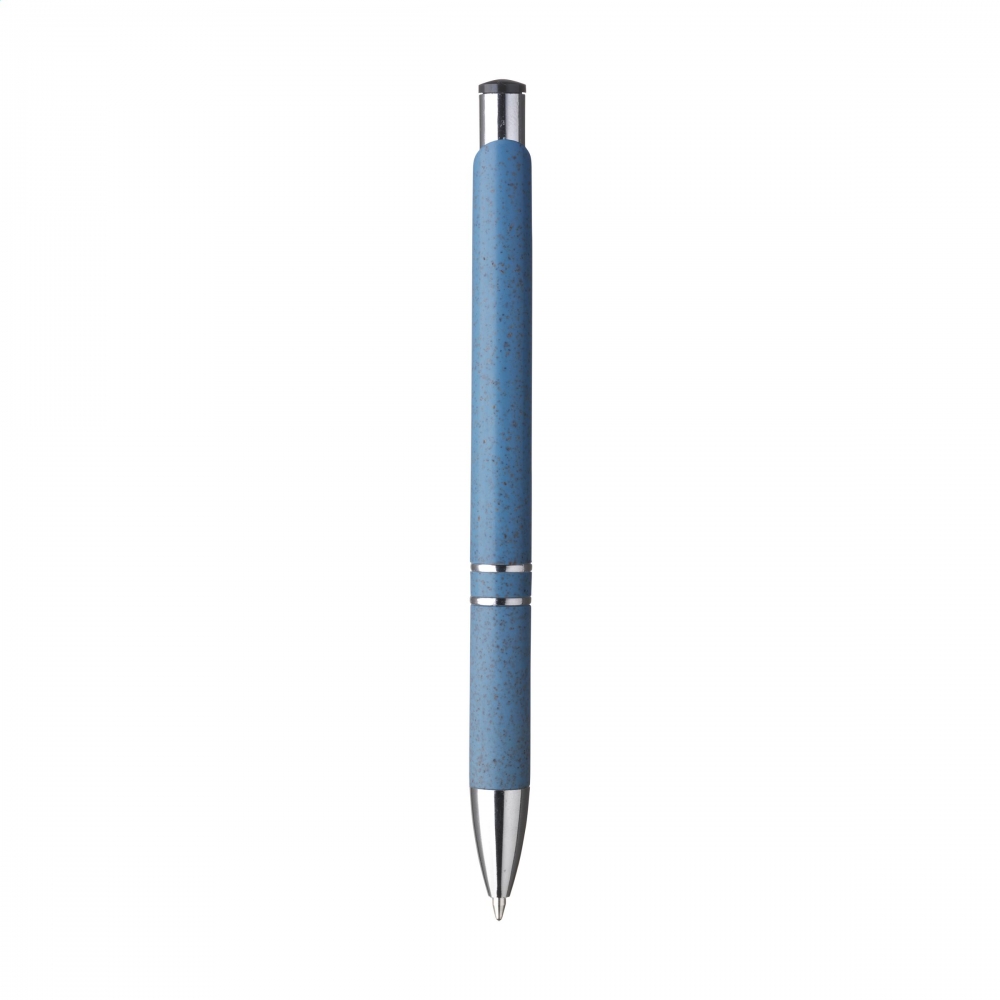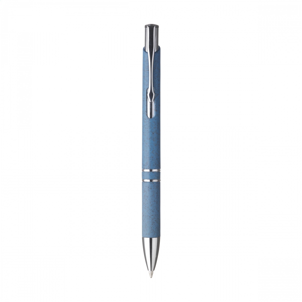 Artikel-Nr: CLP24963020Blauschreibender Kugelschreiber mit Gehäuse aus 50% ABS und 50% Weizenstroh, Metallclip und Chromakzenten aus Kunststoff.