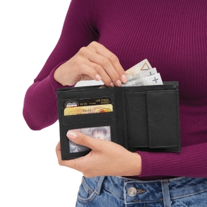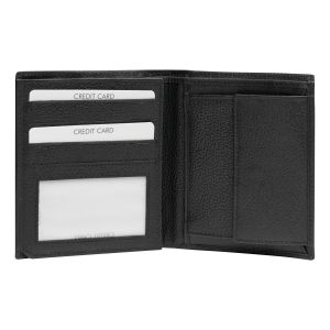 Artikel-Nr: INP56-0404435Echtleder-Geldbörse MESSINA - im Hochformat: innen 3 Einsteckfächer für Geldkarten, 2 Geldscheinfächer, 1 Münzfach mit Druckknopfverschluss für Kleingeld, 3 Klarsichtfächer, 1 zusätzliches Fach, in Box