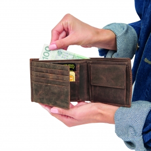 Artikel-Nr: INP56-0404472Echtleder-Geldbörse WILDERNESS I: innen 8 Einsteckfächer für Geldkarten, 2 Geldscheinfächer, 1 Münzfach mit Druckknopfverschluss für Kleingeld, 1 Netzfach, 2 zusätzliche Fächer, außen dekorative Ziernähte, in Box