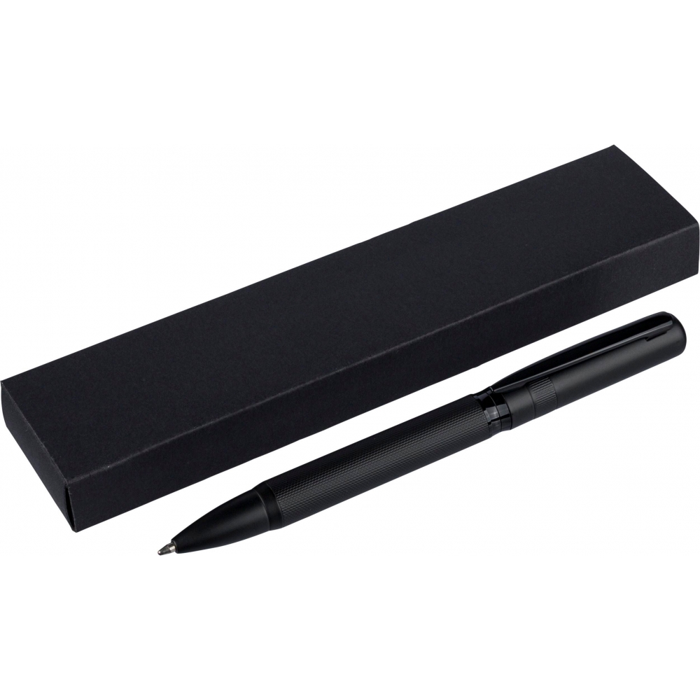 Artikel-Nr: GIV1349349001128Ecobrass-Drehkugelschreiber mit farblich passendem Metallclip und Drehmechanik. Ausgestattet mit deutscher Dokumentenmine in Blau und einer ungefähren Schreiblänge von 1.000 Metern. Einzeln verpackt in einer schwarzen Schiebeverpackung.