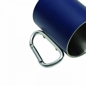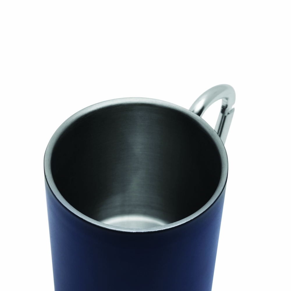 Artikel-Nr: INP56-0603172Edelstahl-Becher DEEP VALLEY, doppelwandig: außen farbig und innen silber, mit silbernem Karabinerhaken (der Karabiner ist NICHT als Sicherung beim Klettern geeignet), Füllmenge ca. 300 ml