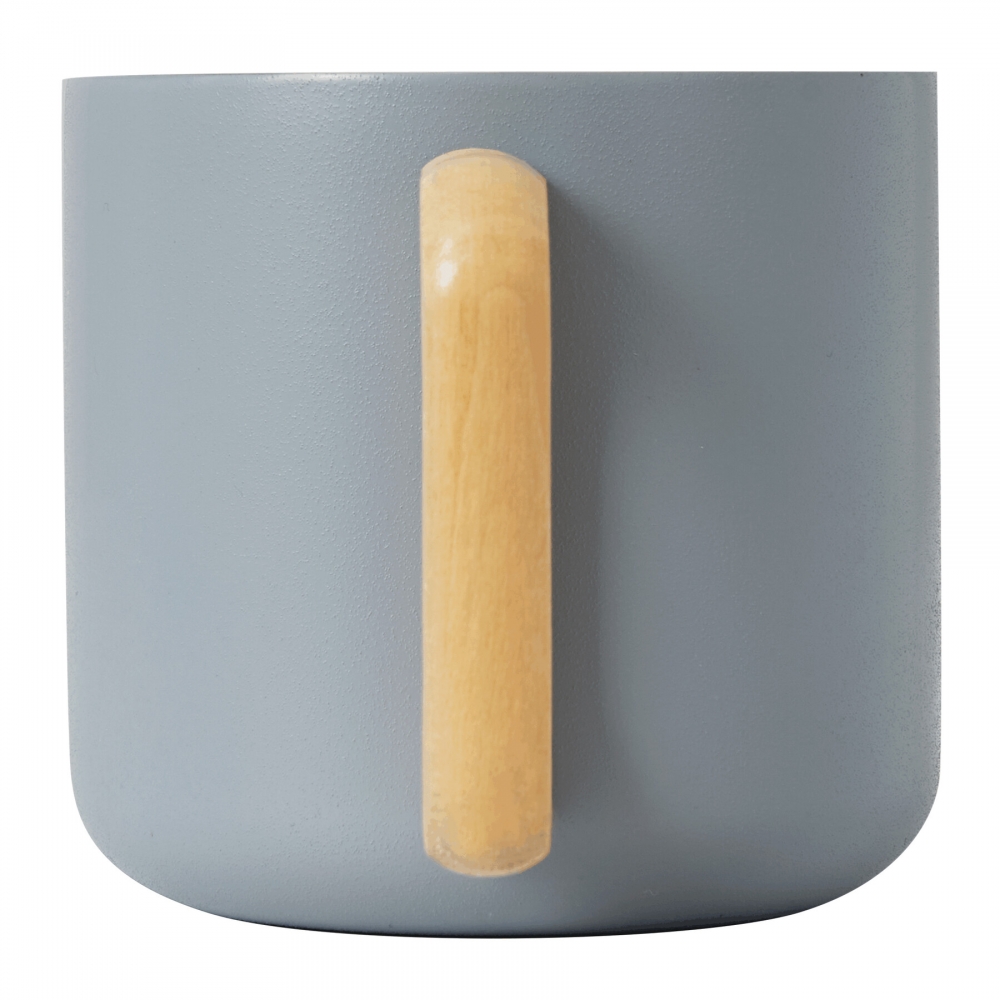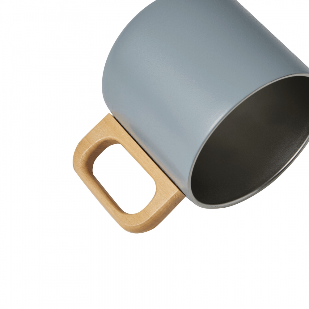 Artikel-Nr: INP56-0603149Edelstahl Becher RUSTIC TRIP, doppelwandig: mit Holzhenkel, außen farbige matte Pulverlackierung und innen silber, Füllmenge ca. 350 ml