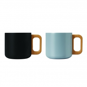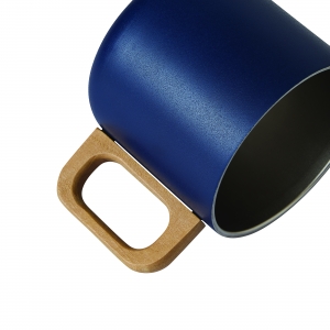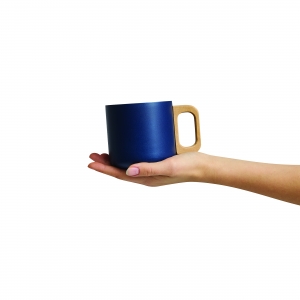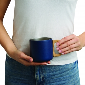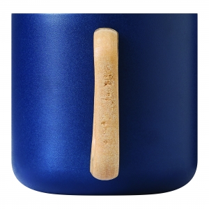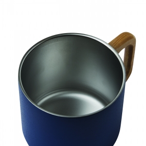 Artikel-Nr: INP56-0603147Edelstahl-Becher RUSTIC TRIP, doppelwandig: mit Holzhenkel, außen farbige matte Pulverlackierung und innen silber, Füllmenge ca. 350 ml, in Box