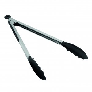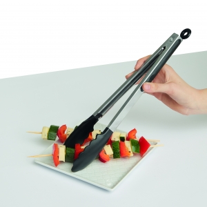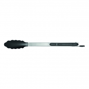 Artikel-Nr: INP56-0604063Edelstahl-Grillzange GRIP: Greifer aus Kunststoff, gummierte Aufhängevorrichtung am Ende des Griffes mit Verschlussmechanismus zum platzsparenden Verstauen – geeignet zum Kochen, Braten, Grillen und Servieren