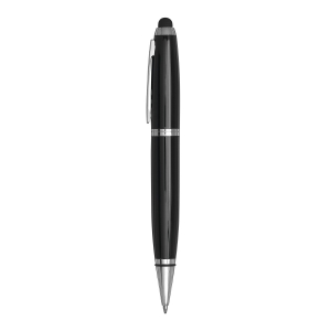 Artikel-Nr: INP58-8113002Edelstahl-Kugelschreiber TOUCH DOWN: mit Großraummine und Drehmechanismus, Touchscreen-Spitze am Schaftende, in Klavierlack-Optik und mit silbernen Dekorelementen, Clip im PiCOWORLD-Design, schwarzschreibend, Lieferung in Geschenkbox