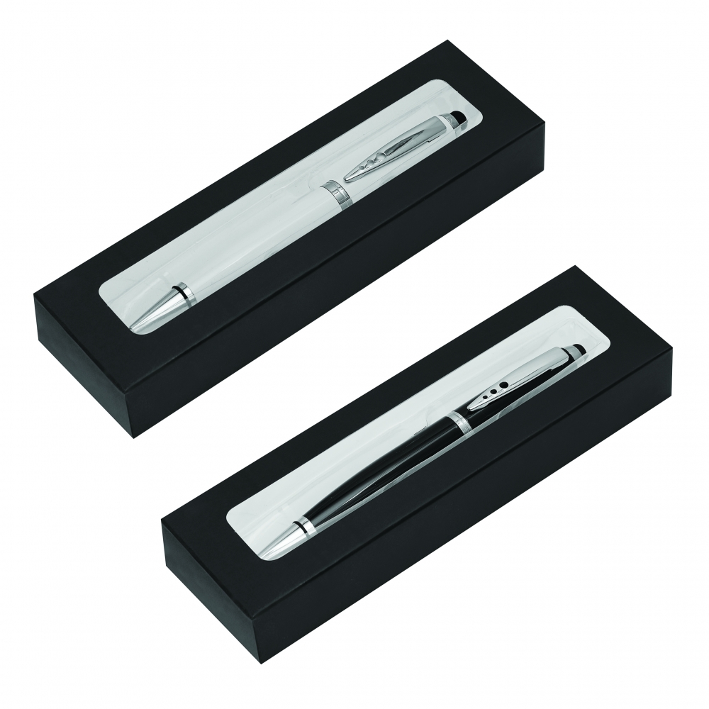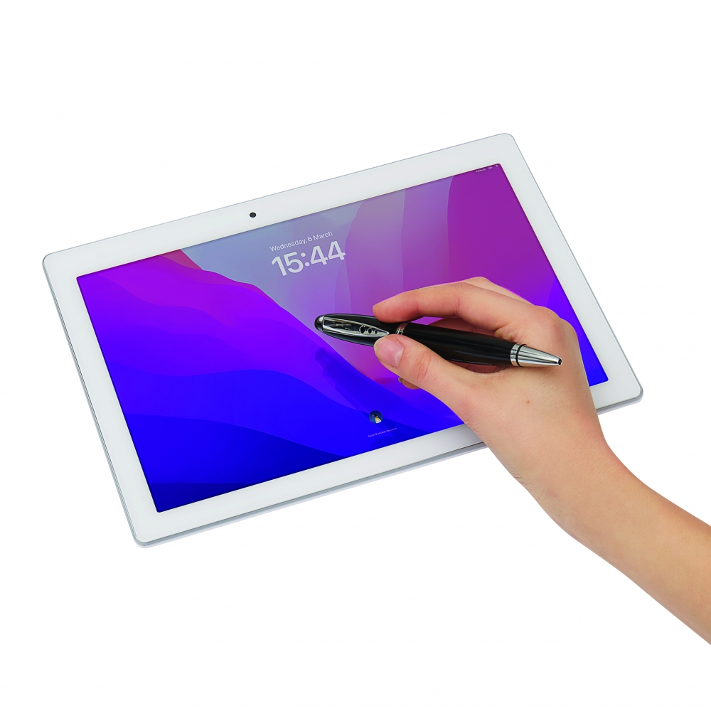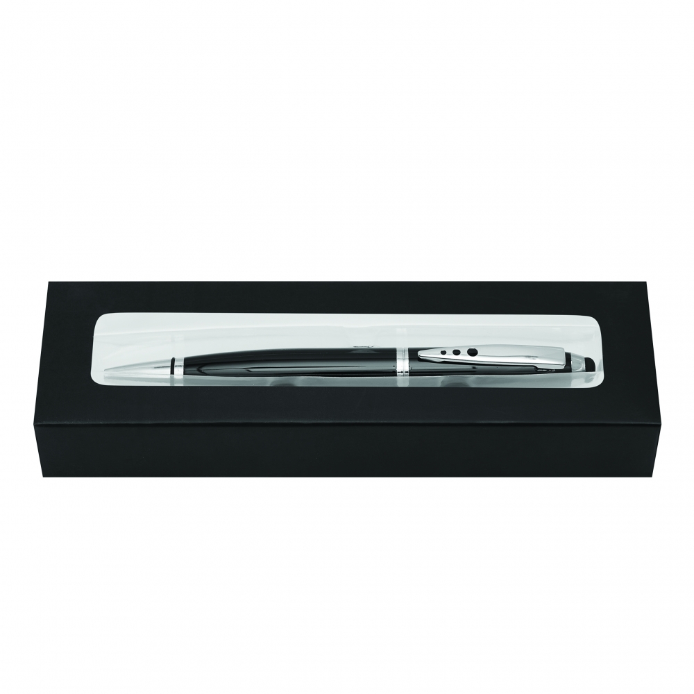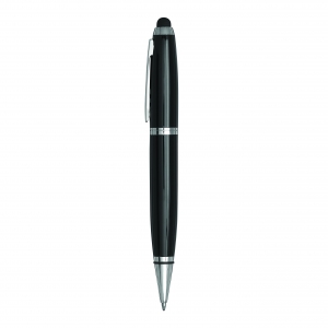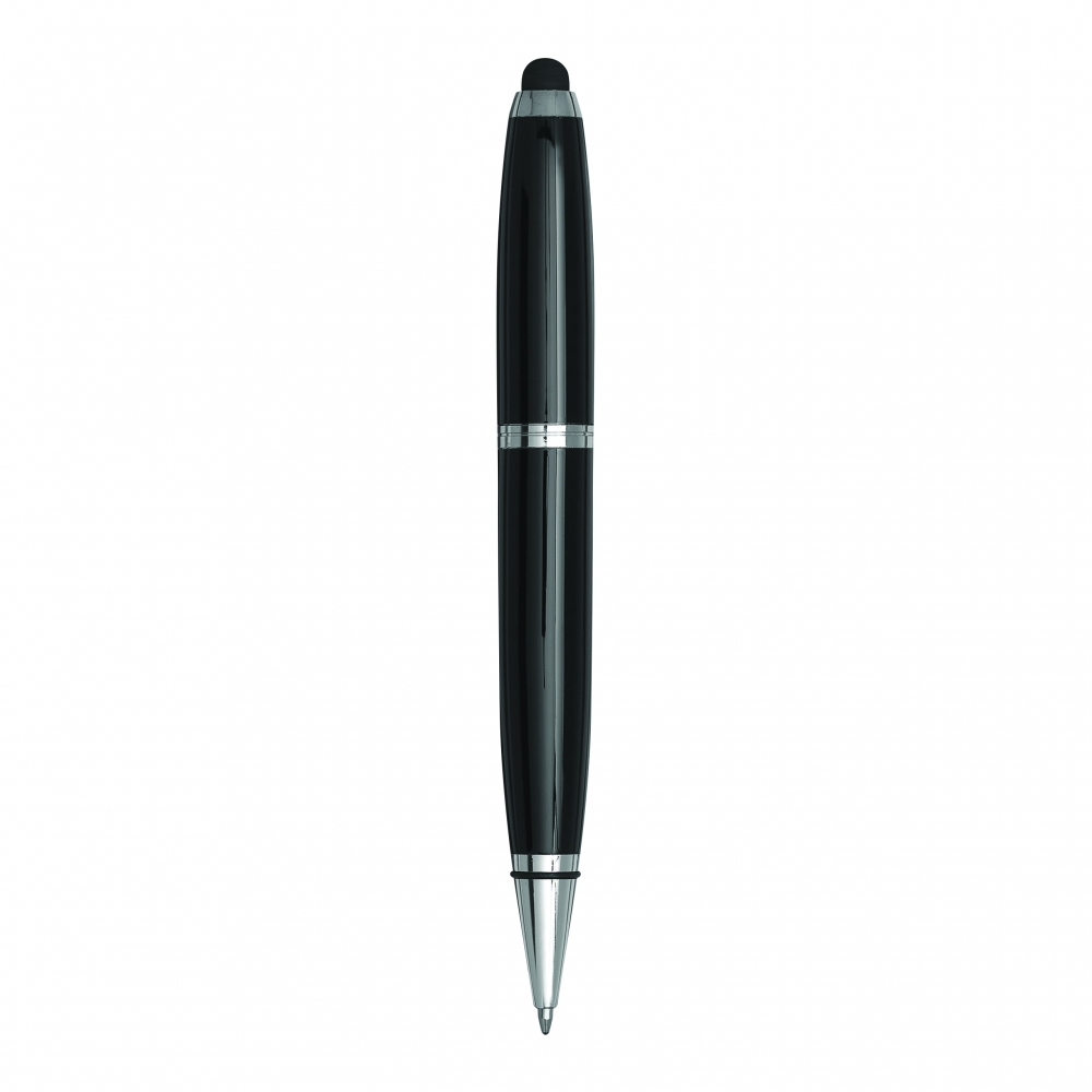 Artikel-Nr: INP58-8113002Edelstahl-Kugelschreiber TOUCH DOWN: mit Großraummine und Drehmechanismus, Touchscreen-Spitze am Schaftende, in Klavierlack-Optik und mit silbernen Dekorelementen, Clip im PiCOWORLD-Design, schwarzschreibend, Lieferung in Geschenkbox