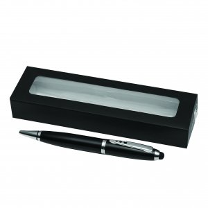 Artikel-Nr: INP58-8113002Edelstahl-Kugelschreiber TOUCH DOWN: mit Großraummine und Drehmechanismus, Touchscreen-Spitze am Schaftende, in Klavierlack-Optik und mit silbernen Dekorelementen, Clip im PiCOWORLD-Design, schwarzschreibend, Lieferung in Geschenkbox