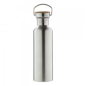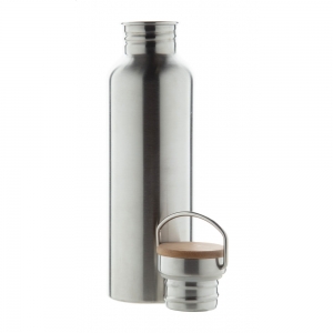 Artikel-Nr: AND800430Edelstahl-Trinkflasche mit Tragedeckel aus Bambus. Füllmenge: 750 ml.