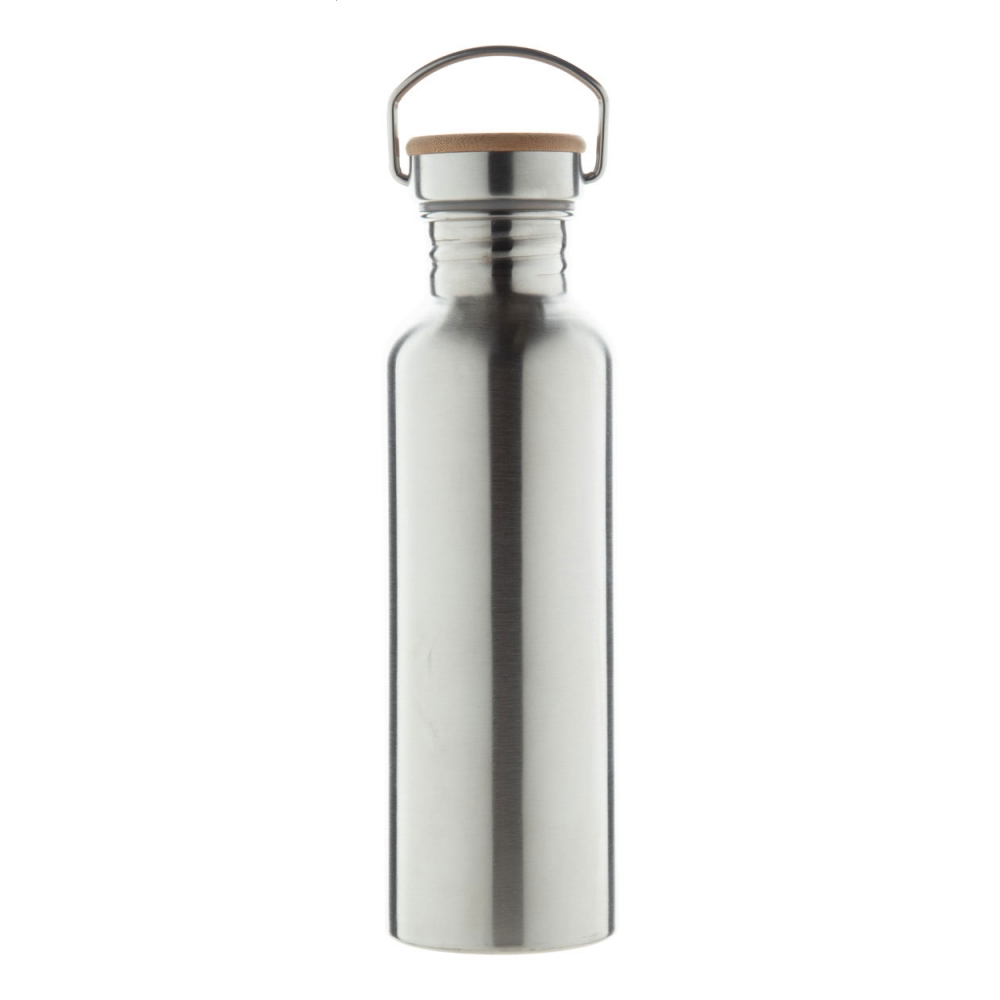 Artikel-Nr: AND800430Edelstahl-Trinkflasche mit Tragedeckel aus Bambus. Füllmenge: 750 ml.