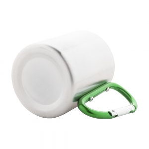 Artikel-Nr: AND741563-07Edelstahlbecher mit farbigem Karabinergriff. Füllmenge: 200 ml.