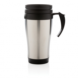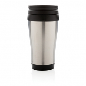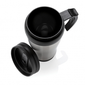 Artikel-Nr: XND432102350ml Edelstahltasse, innen mit Kunststoff ausgekleidet, Deckel mit Schiebeöffnung. Nur Handwäsche.