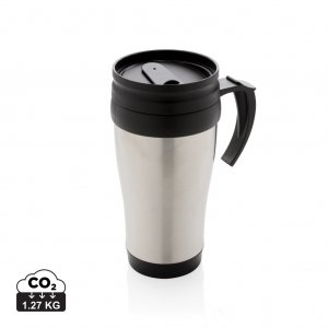 Artikel-Nr: XND432102350ml Edelstahltasse, innen mit Kunststoff ausgekleidet, Deckel mit Schiebeöffnung. Nur Handwäsche.