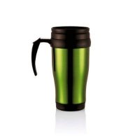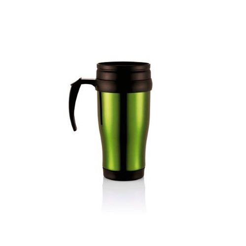 350ml Edelstahltasse, innen mit Kunststoff ausgekleidet, Deckel mit Schiebeöffnung. Farbe: grün Maße (cm): 12 x 8 x 18 Gewicht (g): 245 Druckfläche (mm): 35 x 35
