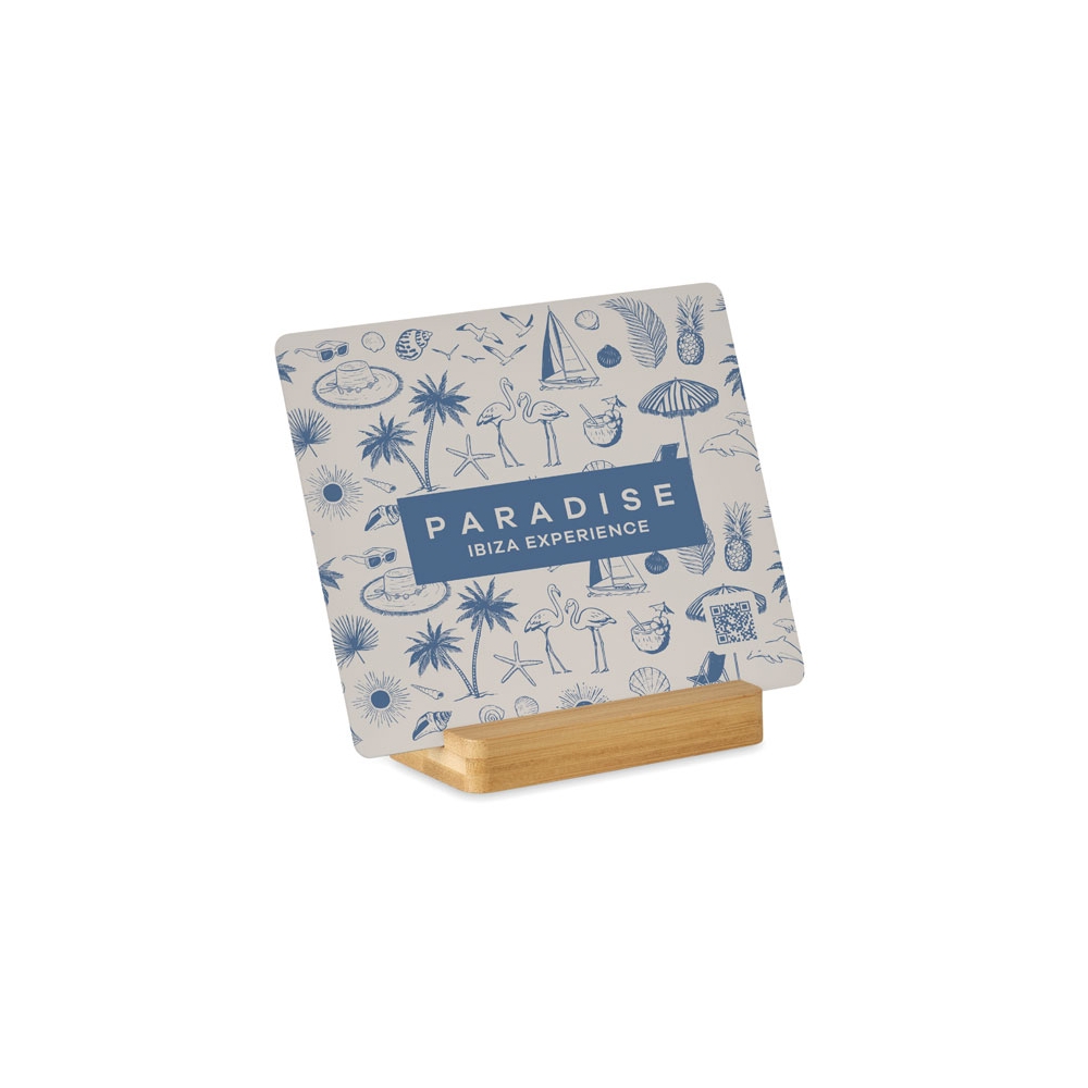 Artikel-Nr: OCBMO2959-40Sublimation-Ehrentafel aus Aluminium mit Sockel aus Bambus. Ideal für individuelles Branding oder als Display.
