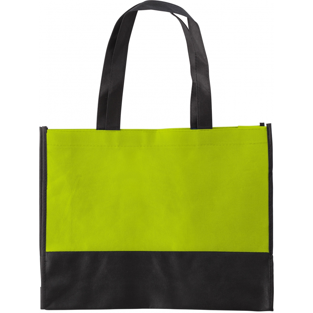 Artikel-Nr: GIV0971019Einkaufstasche aus Non-Woven, zweifarbig, mit 9 cm Boden- und Seitenfalte mit kurzen Henkeln.
