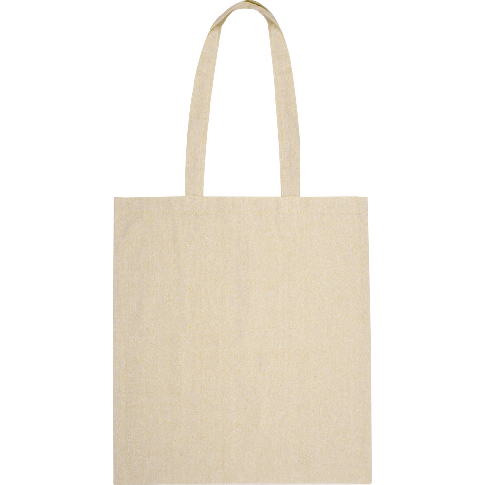 Artikel-Nr: MCM6235806Oeko-Tex® STANDARD 100 zertifizierte Einkaufstasche aus recycelter Baumwolle mit langen Tragehenkeln und einer Grammatur von 140g / m². Die Werbung wird auf eine Seite der Tasche gedruckt.