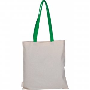 Artikel-Nr: EAG545409Baumwolltasche mit zwei langen Henkel aus 75% recycelter Baumwolle und 25% recyceltem PET. Grammatur 140 gsm. Ihre Werbung bringen wir auf einer Seite der Tasche an.