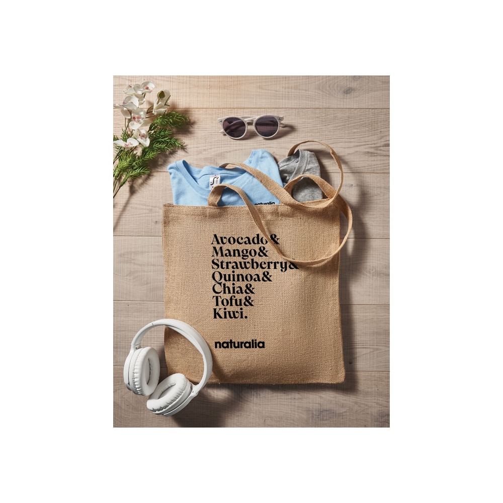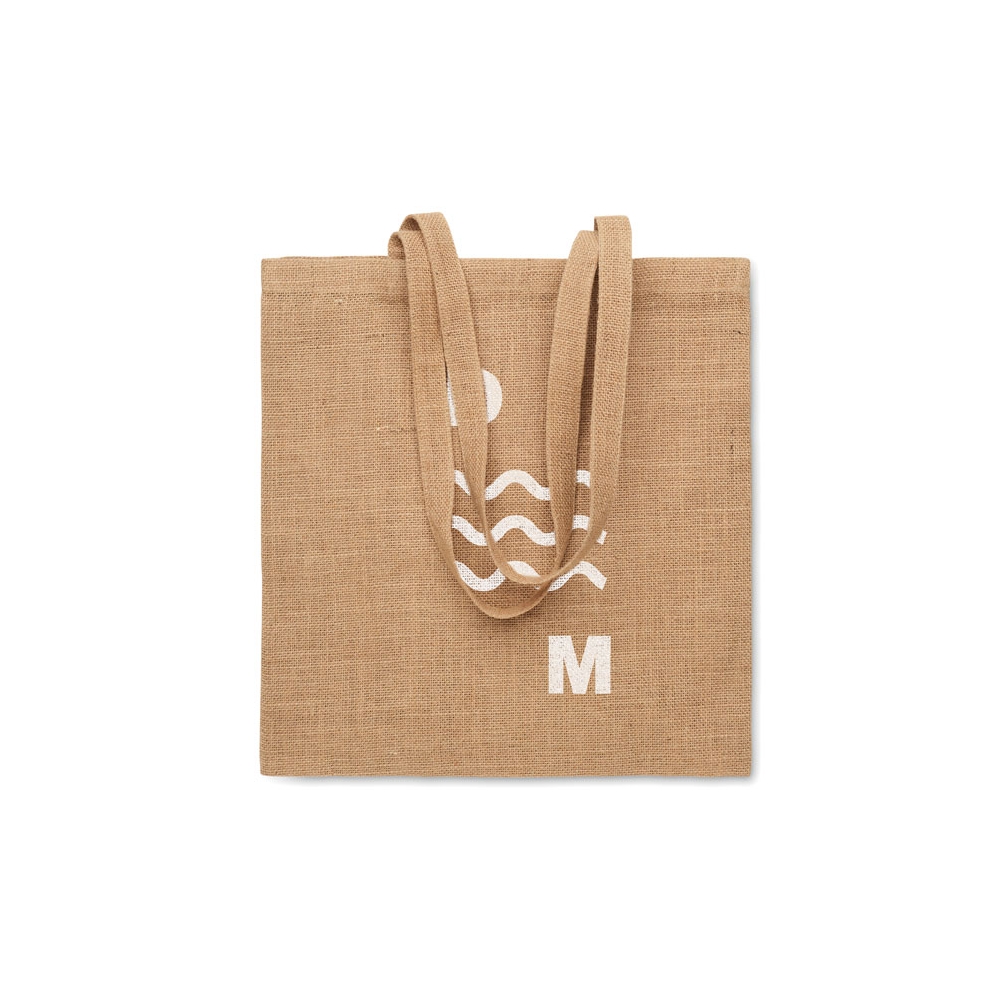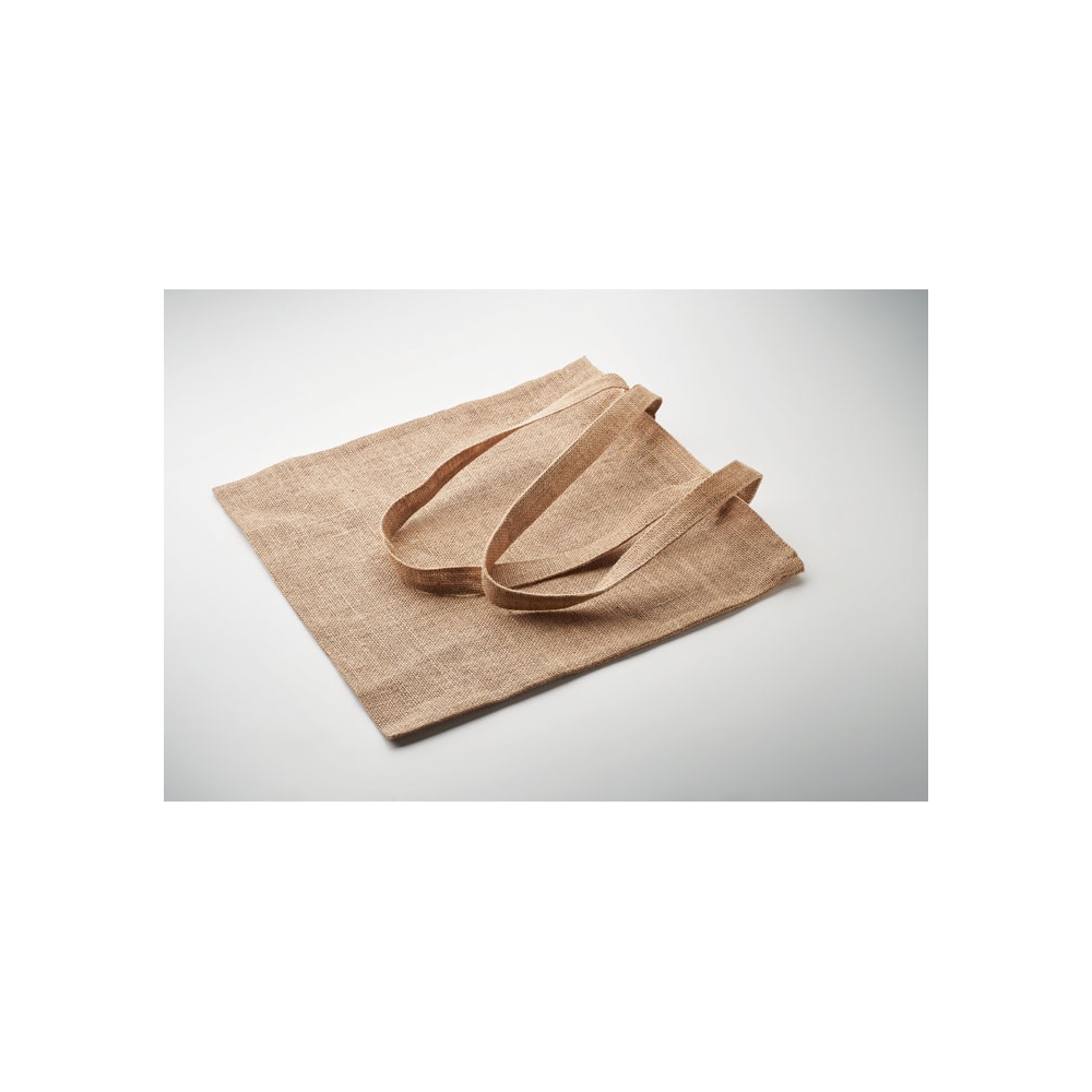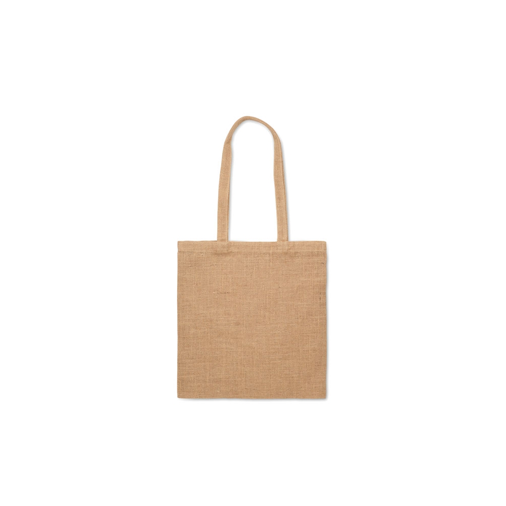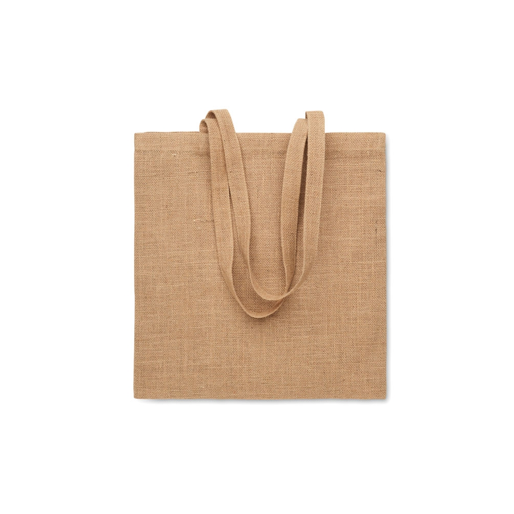 Artikel-Nr: OCBMO2209-13Einkaufstasche aus Jute mit langen Tragegriffen. Dieses Produkt ist nach OEKO-TEX® STANDARD 100 zertifiziert.